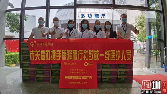 為表達對醫(yī)護人員的感謝,深圳市康輝旅行社捐贈價值6.2萬元的廣東省內(nèi)溫泉酒店免費入住券40張。每張入住券可在廣東省內(nèi)指定酒店入住雙床房或大床房?!耙咔槠陂g,我們康輝人一直都在為抗擊疫情獻綿薄之力?!鄙钲谑锌递x旅行社有限公司董事總經(jīng)理滿炎權告訴記者,在疫情前期,全國各地醫(yī)用物資告急。各地康輝分公司迅速自我組織、自籌資金,聯(lián)系在國外的康輝旅行社的領隊及導游購買大量醫(yī)療物資回國。“現(xiàn)在國內(nèi)醫(yī)療物資暫時不缺了,我們深圳康輝送給三院的醫(yī)護人員溫泉酒店入住券,希望他們在疫情結束后,能好好休息。”