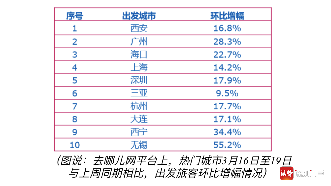 深圳特區(qū)報(bào)2020年3月19日訊 進(jìn)入3月中旬,隨著各地有序復(fù)工復(fù)產(chǎn),旅游行業(yè)也出現(xiàn)回暖跡象。去哪兒網(wǎng)數(shù)據(jù)顯示,本周五一假期搜索量環(huán)比上周增長(zhǎng)76%。