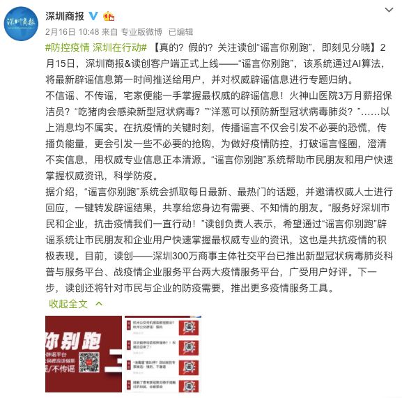 疫情發(fā)生后,深圳商報(bào)全體編輯24小時(shí)在線,用新媒體形式、全媒體平臺(tái),把政府最新政策和網(wǎng)友關(guān)注熱點(diǎn)第一時(shí)間傳遞出去。