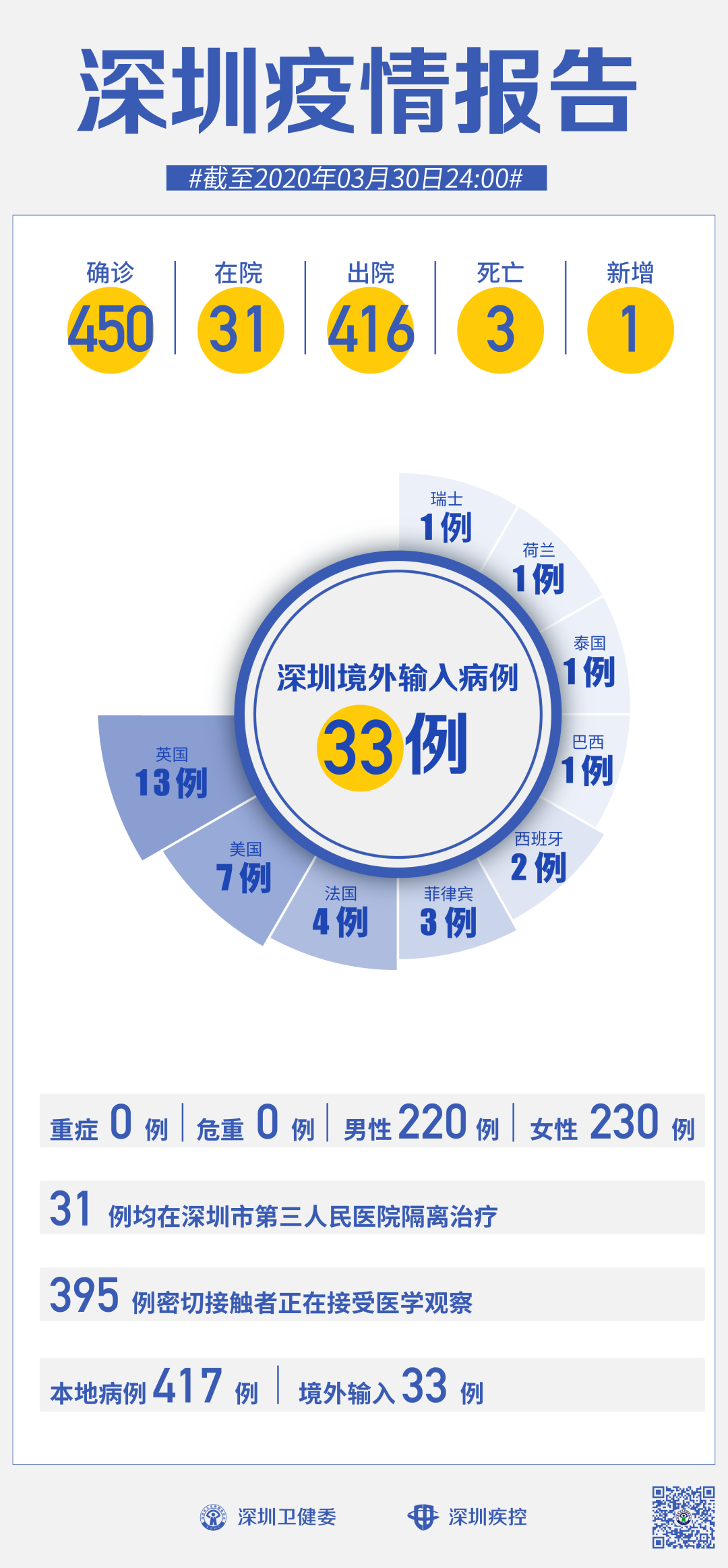 3月30日,深圳確診1例境外輸入“新冠肺炎”新病例,累計(jì)達(dá)33例。