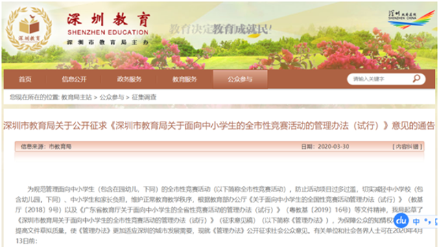 深圳市教育局:不舉辦面向義務(wù)教育階 ...