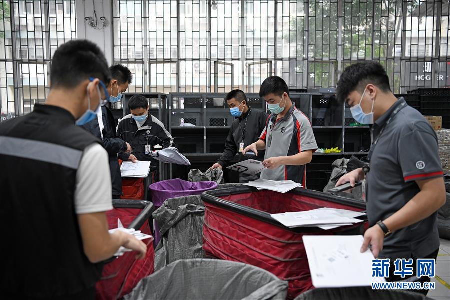 4月1日,在順豐深圳福田分部,快遞員在分揀快件。據(jù)深圳市郵政管理局介紹,春節(jié)以來,深圳郵政快遞業(yè)累計向湖北運送各類醫(yī)療、防疫物資超2萬批次,累計為深圳市民配送防疫物資和生活必需品超過2.5億件,為防疫物資和群眾基本生活必需品送達提供了有力保障。新華社記者 梁旭 攝