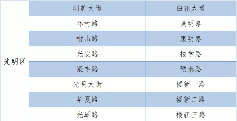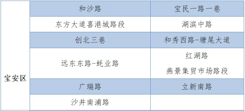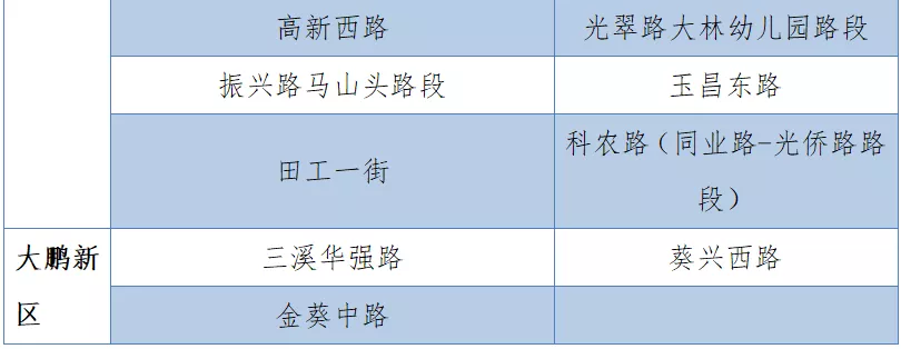 具體設(shè)置路段請(qǐng)看表格