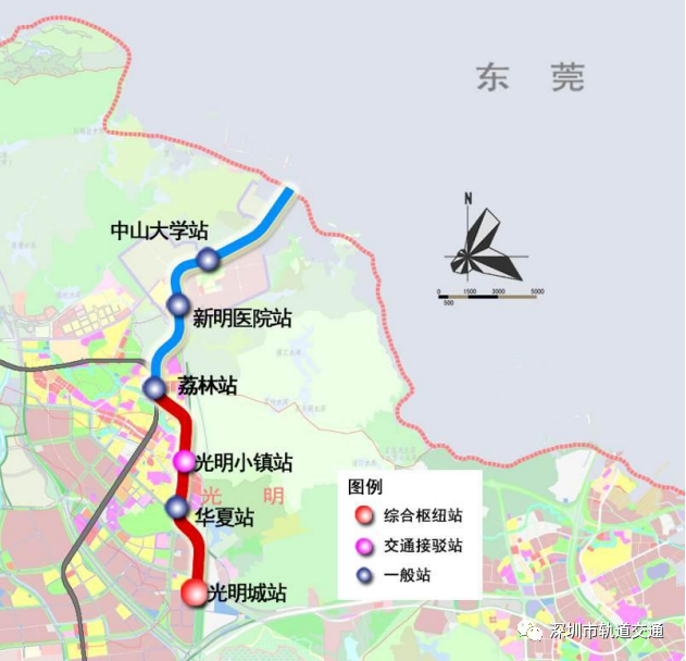 6號(hào)線支線二期工程自翠湖站(原荔林站)至光明城站,線路長度4.9公里(地下線4.25公里、地上線0.65公里),采用B型車6輛編組;建設(shè)工期4年。