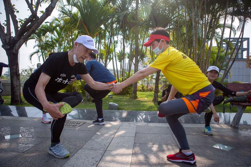 ▲跑后拉伸很重要哦。圖/賴(lài)?yán)?/p>
