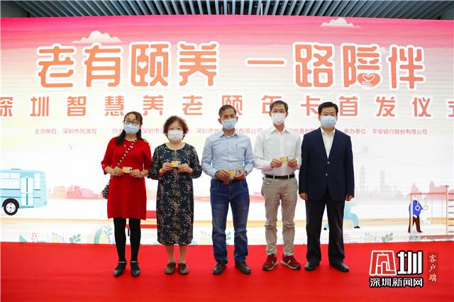 深圳市副市長黃敏為4位老人代表頒發(fā)了頤年卡。