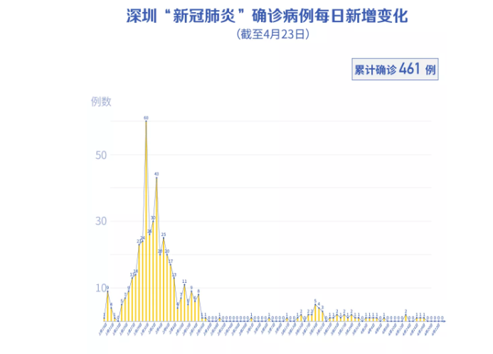 截至4月24日24時,深圳累計報告新冠肺炎病例461例。4月24日當(dāng)天新增出院1例。