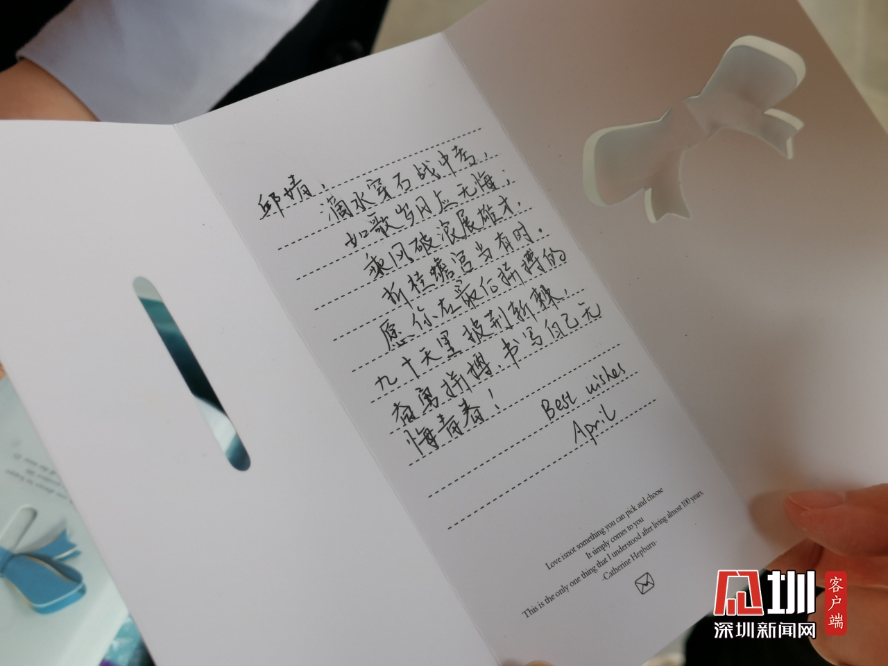 龍華區(qū)外國語學校邱婧同學收到老師祝福卡(鄭瑞欣 攝)