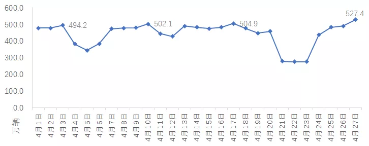截至4月27日深圳車流量變化情況