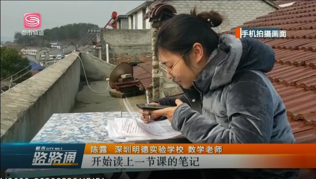 深圳中小學(xué)網(wǎng)課開課以來,廣大青年教師克服種種不利條件,變身教育主播,讓知識(shí)穿越屏幕直達(dá)學(xué)生心靈,深圳明德實(shí)驗(yàn)學(xué)校的陳露老師就是其中一位典型代表。她因疫情滯留于湖北農(nóng)村,由于信號(hào)差,一開始為了錄制微課,白天她就帶好口罩跑到雜草叢生的山頂找信號(hào),一塊木頭當(dāng)?shù)首?,坐下慢慢等上傳視頻,頂著寒風(fēng)一坐就是半天。線上教學(xué)正式開課后,由于設(shè)備和信號(hào)問題,陳老師只能采用QQ直播的方式給學(xué)生上課,為了保障語音效果,她把課堂搬到信號(hào)稍強(qiáng)的屋頂。上屋頂不是件容易的事,陳老師必須先爬一個(gè)陡峭的梯子,再匍匐穿過一個(gè)孔洞才能到達(dá)。一個(gè)天臺(tái)、一張折疊桌成了她的“三尺講臺(tái)”,一疊信紙成了她的“黑板”,一部手機(jī)成了她的“多媒體”。陳露老師每天坐在樓頂?shù)暮焙惋L(fēng)雪中,堅(jiān)持完成直播課,保證學(xué)生正常的線上學(xué)習(xí)。