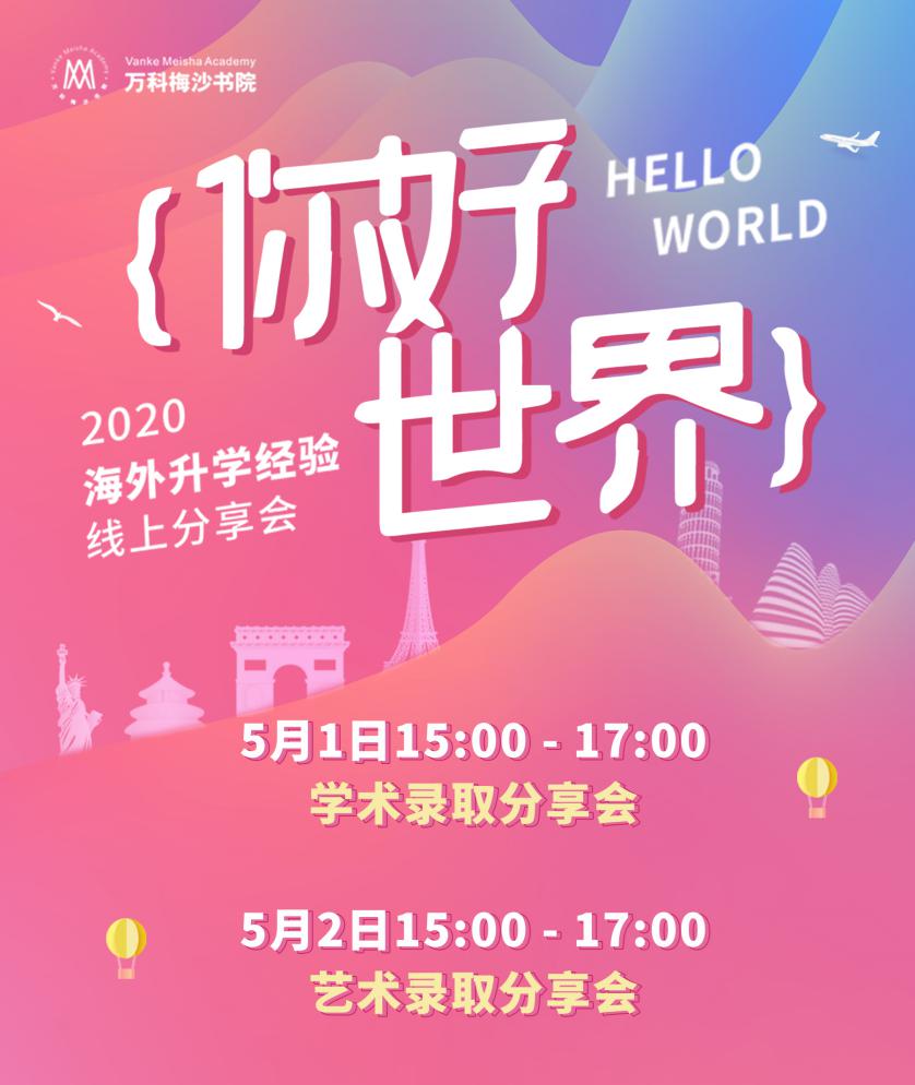 萬科梅沙書院2020“你好,世界”海外升學(xué)經(jīng)驗線上分享會分為學(xué)術(shù)專場、藝術(shù)專場進(jìn)行,10位梅沙優(yōu)秀畢業(yè)生、1位家長代表、升學(xué)指導(dǎo)團(tuán)隊、藝術(shù)專業(yè)老師參與分享。
