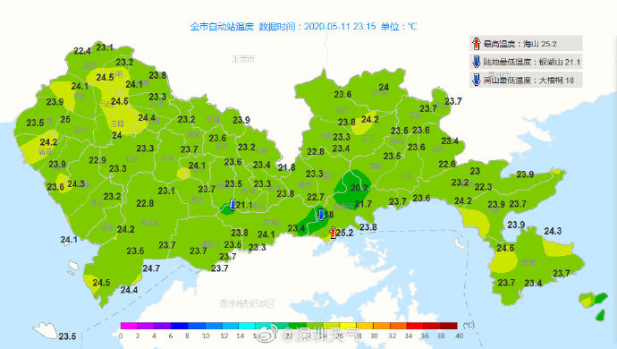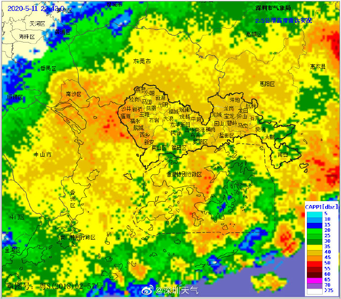 23時32分:【深圳市取消暴雨黃色和大風(fēng)黃色預(yù)警,雷電預(yù)警繼續(xù)生效】強(qiáng)降雨帶已經(jīng)移出我市,市氣象臺于2020年05月11日23時30分在全市取消暴雨黃色、大風(fēng)黃色預(yù)警。全市雷電預(yù)警仍在生效中,未來1-2小時仍有陣雨和零散雷暴,市民仍需注意遠(yuǎn)離河道和危險邊坡等。