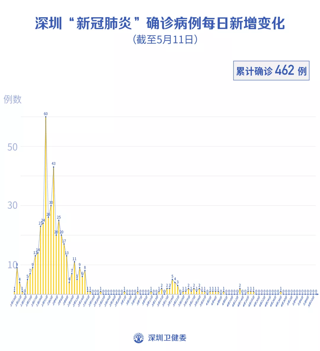 截至5月11日24時,深圳累計報告新冠肺炎病例462例。