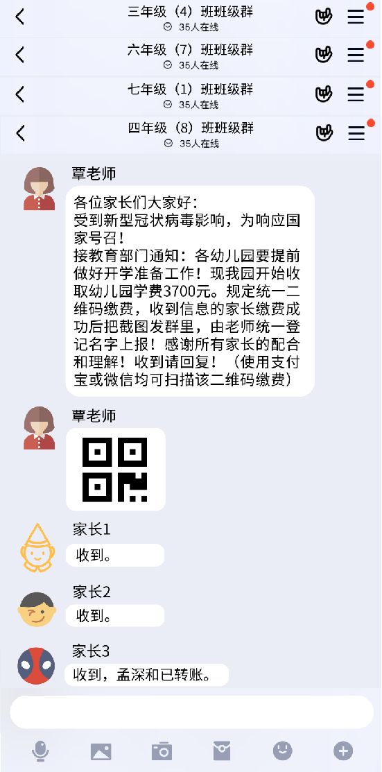 騙子在收款后立即退群,等真老師上線后,被騙父母醒悟過來后,騙子已經(jīng)逃之夭夭。