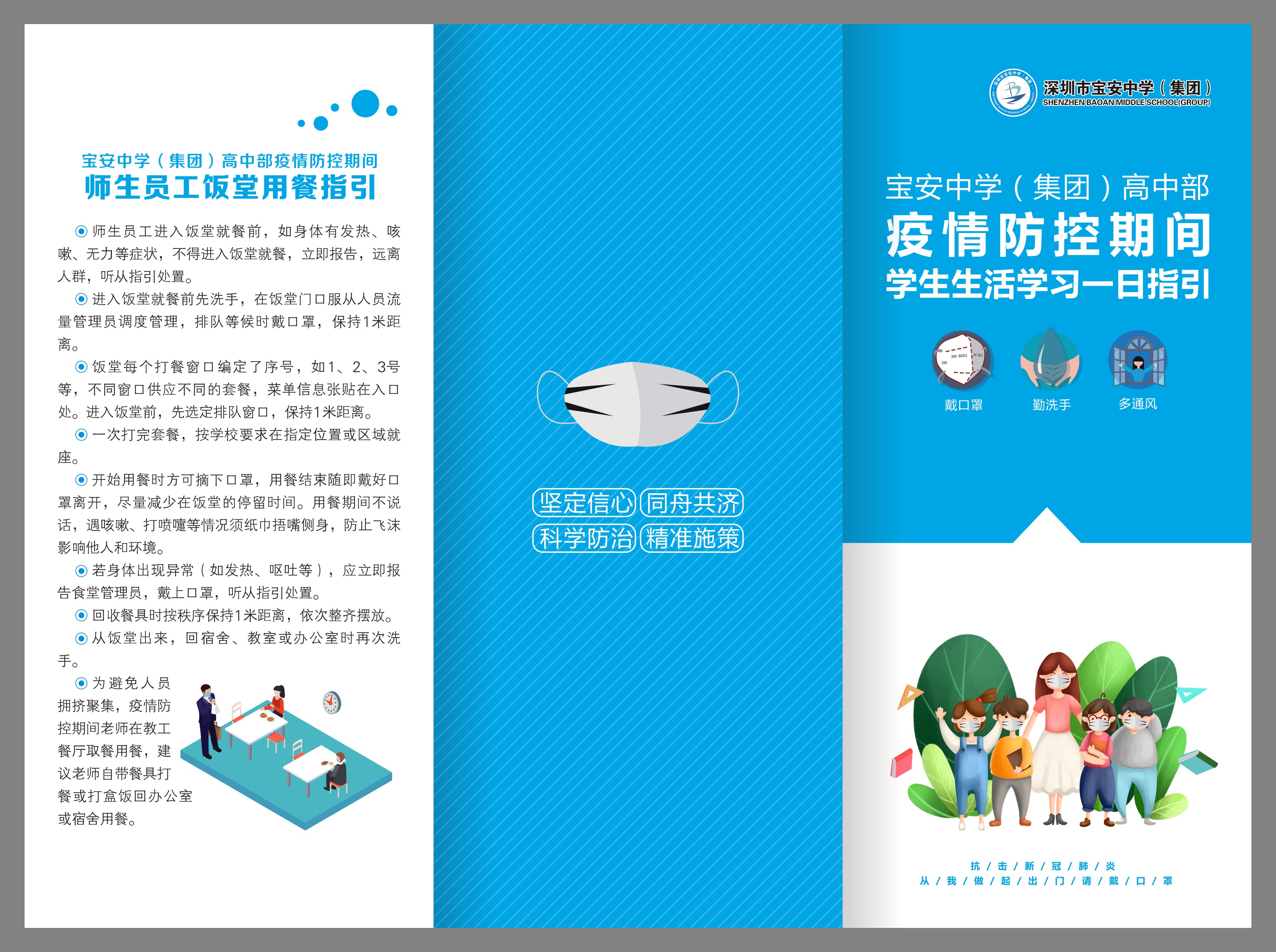 早在3月,返校復(fù)課的相關(guān)準(zhǔn)備工作就已經(jīng)在緊鑼密鼓地推進(jìn)中。為了規(guī)范師生返校復(fù)課各項措施和要求,在深圳市教育局發(fā)布復(fù)課防控疫情工作指引之前,彭鍛華就結(jié)合疫情形勢變化與學(xué)校實(shí)際,提出制定寶中集團(tuán)的《學(xué)生學(xué)習(xí)生活一日指引》《教師工作生活一日指引》,對在校師生每天各個 時段 、各個 地點(diǎn) 的學(xué)習(xí)、工作和生活做出了明確指引。