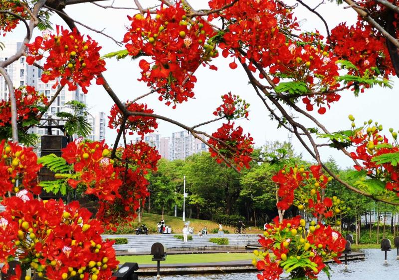 見圳客戶端·深圳新聞網(wǎng)2020年5月15日訊(深圳特區(qū)報記者 邱海彬 文/圖)又是一年鳳凰花開時,五月的鵬城沉浸在鳳凰木火紅的海洋之中,道路旁、公園內(nèi)、小區(qū)里的鳳凰花盛開著美麗的花朵,為城市增添了不少靚麗色彩,紅紅火火的鳳凰花成了夏日熱情的引領(lǐng)者。