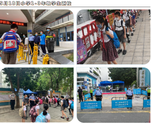 見圳客戶端·深圳新聞網(wǎng)2020年5月18日訊 5月18日,深圳市福田區(qū)迎來第三批返校師生,來自全區(qū)各小學(xué)1—3年級近6萬名小學(xué)生正式按下“復(fù)課鍵”。至此,福田區(qū)中小學(xué)已全面復(fù)課。據(jù)統(tǒng)計,5月18日,福田公安分局出動警力885人次,護(hù)學(xué)崗力量963人次,保障返校秩序有效安全。