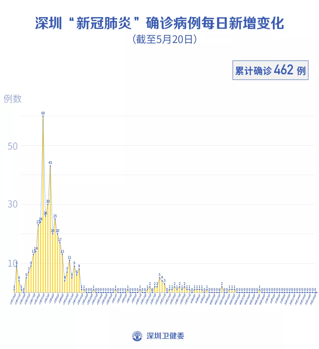 截至5月20日24時(shí),深圳累計(jì)報(bào)告新冠肺炎病例462例。