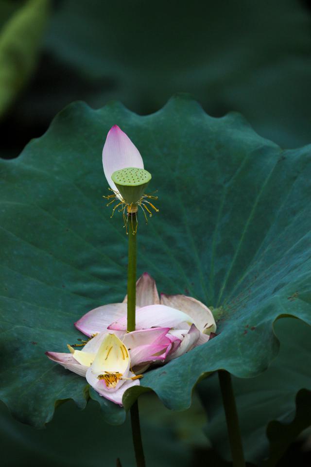 ▲即將脫落最后一片花瓣的荷花。