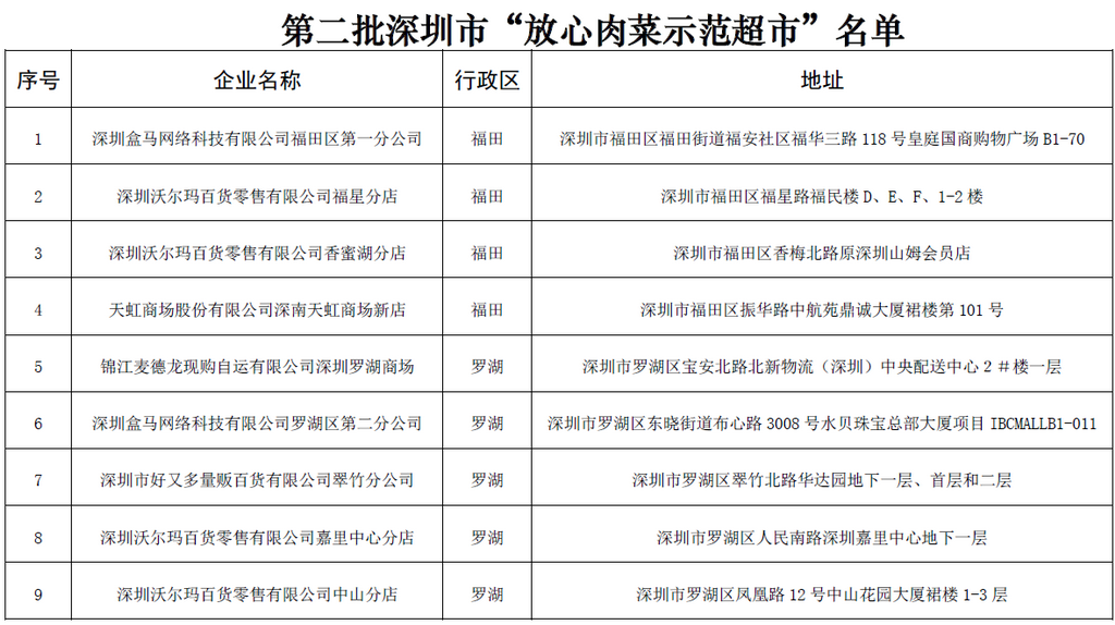 見圳客戶端?深圳新聞網(wǎng)2020年5月29日訊(見圳客戶端、深圳新聞網(wǎng)記者 劉夢婷 見習(xí)記者 唐麗玲)日前,深圳市市場監(jiān)督管理局(以下簡稱“深圳市監(jiān)局”)公布了2020年度第二批深圳市“放心肉菜示范超市”名單,盒馬、沃爾瑪、天虹等27家在深分店榜上有名。