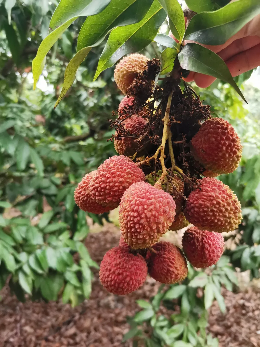 5月28日,西麗果場的種養(yǎng)專家邱金淡一早來到園區(qū),開展病蟲防治,清理荔枝樹上破裂的荔枝。前幾日,一場猛烈的龍舟雨,讓長勢正旺的糯米糍遭受當(dāng)頭一擊,不少爆漿裂果。邱金淡在南山種植荔枝20多年,對各種“天災(zāi)意外”波瀾不驚,談起今年的收成,他苦笑著說,“種植就是看老天爺吃飯”。受雨水影響,糯米糍、桂味減產(chǎn)明顯。早熟品種妃子笑受影響較小,已由青轉(zhuǎn)紅成熟,開始陸續(xù)上市。