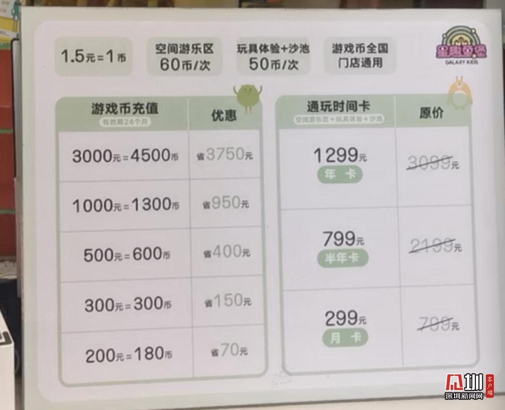 游樂場(chǎng)內(nèi)多個(gè)游樂項(xiàng)目,收費(fèi)各有不同,適宜3到12歲的兒童游玩,家長(zhǎng)也可以選擇購(gòu)卡通玩。其中月卡299月,半年卡799元,年卡1299元,家長(zhǎng)可以按需購(gòu)買。游樂場(chǎng)內(nèi)部潔凈,有大量家長(zhǎng)休息區(qū),前臺(tái)可租借充電寶,還有專門的儲(chǔ)物柜可以放置隨身物品。