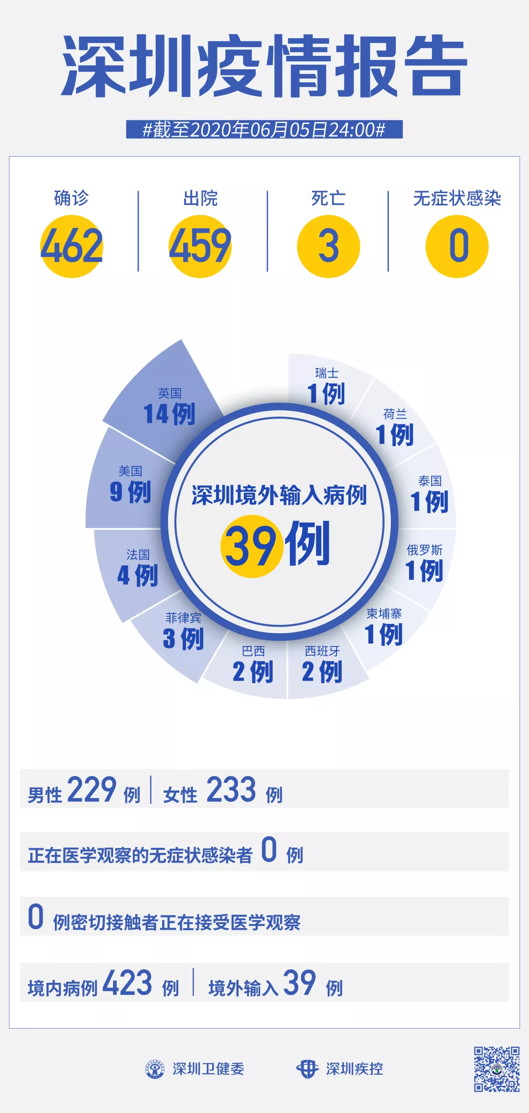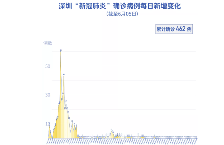 截至6月5日24時,深圳累計報告新冠肺炎病例462例。