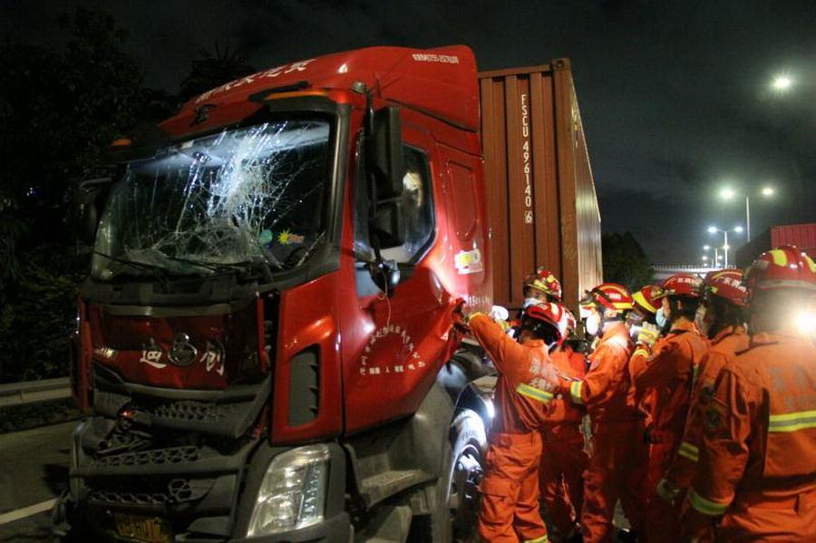 見圳客戶端·深圳新聞網(wǎng)2020年6月17日訊(見圳客戶端、深圳新聞網(wǎng)記者 張喆 通信員 戴沛旭)6月16日4時(shí)16分,位于龍大高速往東莞方向黃江公明出口500米處,兩輛大貨車在行駛過程中發(fā)生追尾,后車司機(jī)被困駕駛室。接警后,光明消防救援站迅速出動(dòng)4車22名指戰(zhàn)員趕赴現(xiàn)場處置。到達(dá)現(xiàn)場后救援人員第一時(shí)間對(duì)現(xiàn)場拉起警戒,隨后利用破拆工具破開車門救出被困駕駛員,經(jīng)檢查詢問男子身體無大礙。