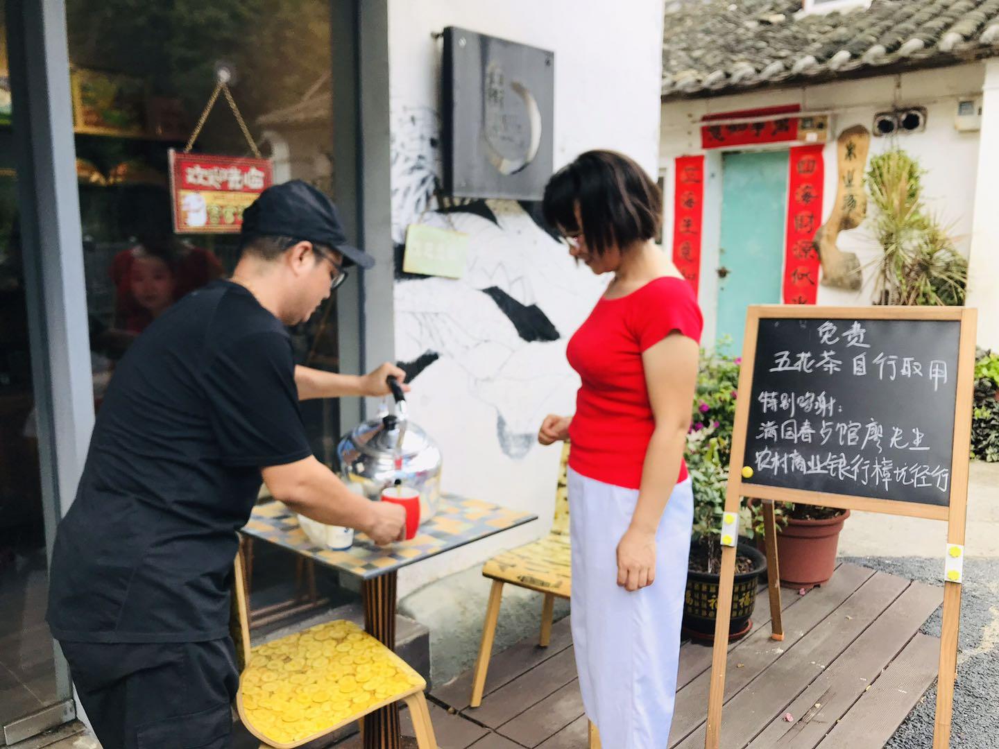 “夏古草、金銀花、菊花……”小林哥精心配制的“愛心涼茶”受到許多村民、駐村藝術(shù)家以及很多外來游客的歡迎。而為市民提供免費(fèi)“愛心涼茶”的事跡,感動許多人的同時,更影響了周圍一批熱心的企業(yè),他們紛紛加入涼茶的善意隊(duì)伍中參與愛心接力,為上圍“愛心涼茶”添磚加瓦,形成了“善的循環(huán)”。
