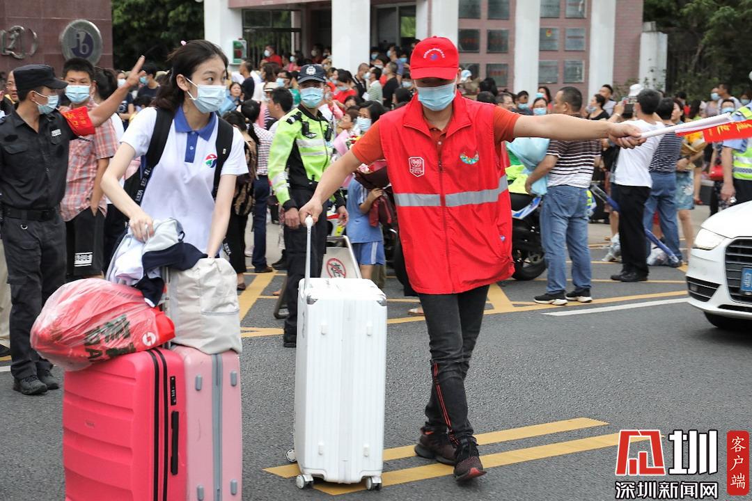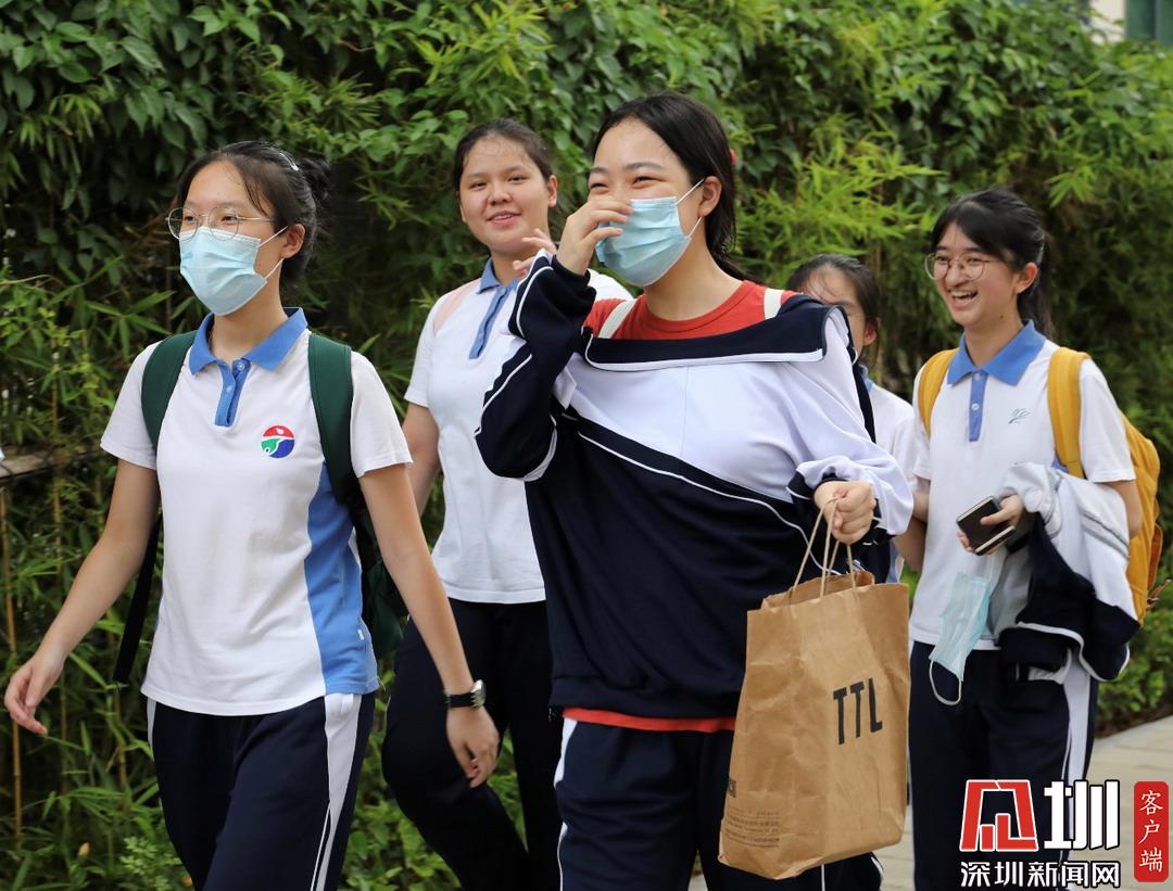 深圳高級(jí)中學(xué)考點(diǎn)外考生腳步輕盈走出考場(chǎng),有說(shuō)有笑。