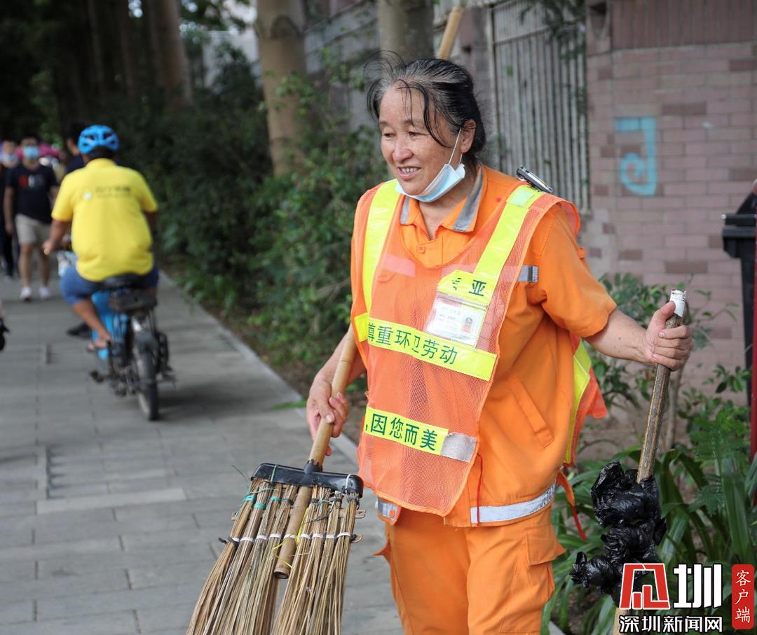 考點(diǎn)外正在進(jìn)行街道保潔的環(huán)衛(wèi)工人。
