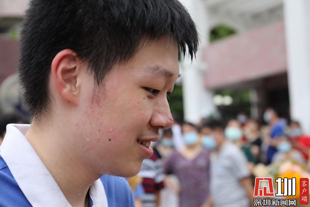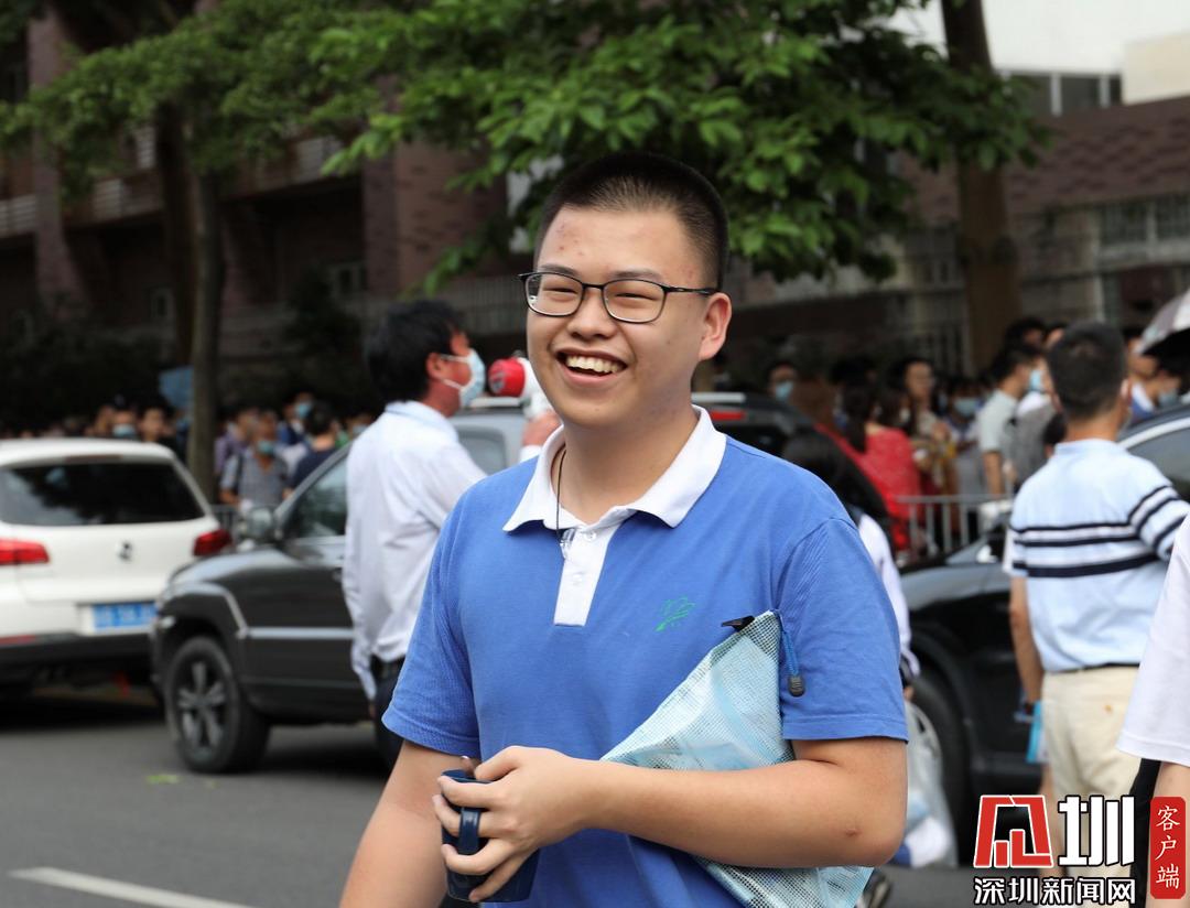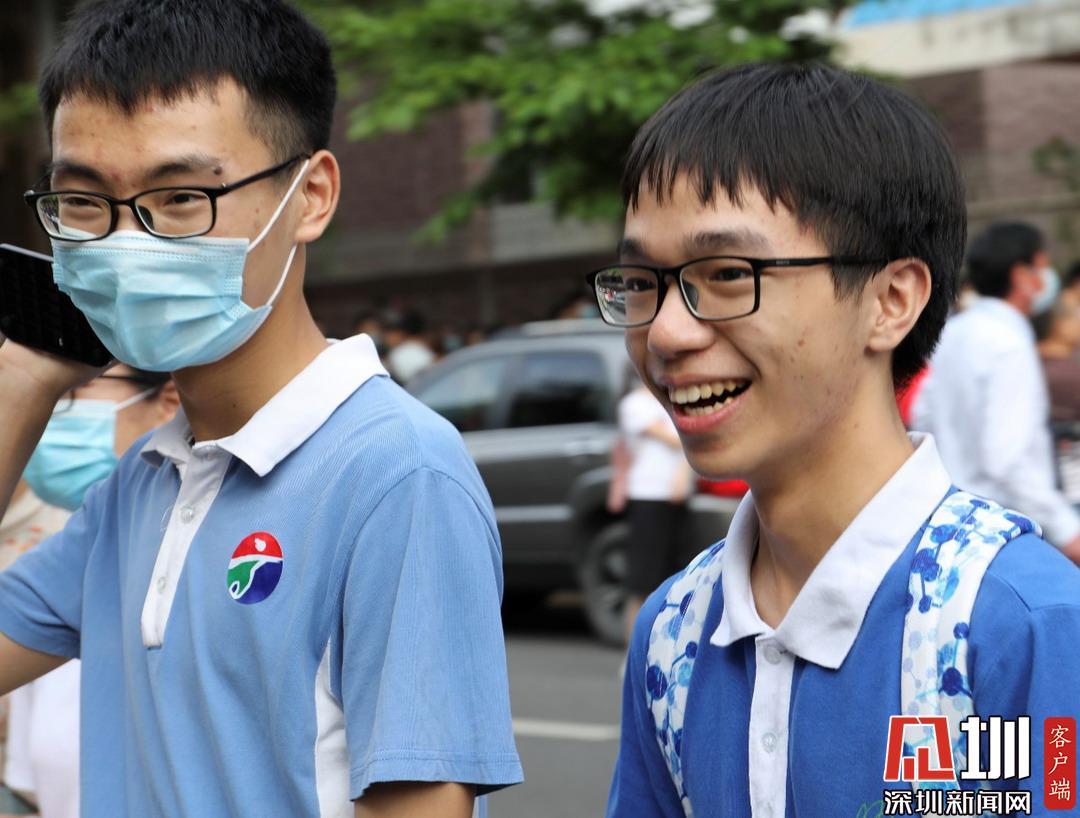 深圳高級(jí)中學(xué)考點(diǎn)外考生自信滿(mǎn)滿(mǎn)走出考場(chǎng)。