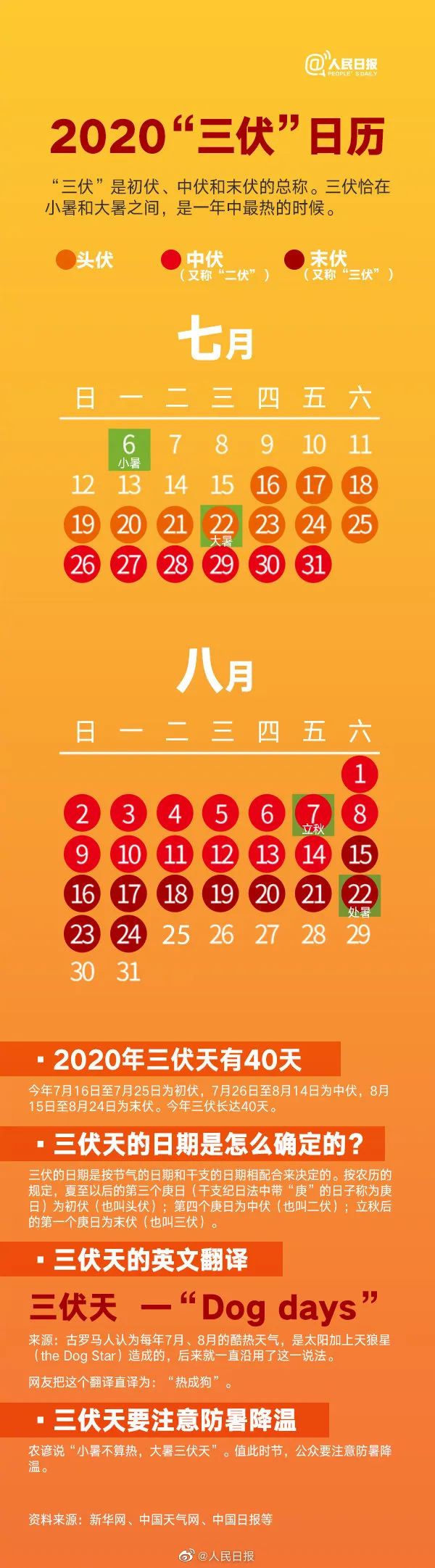 今年的入伏時間是7月16日(本周四),一年中最熱的時候就要到了,而且,今年三伏天長達40天。