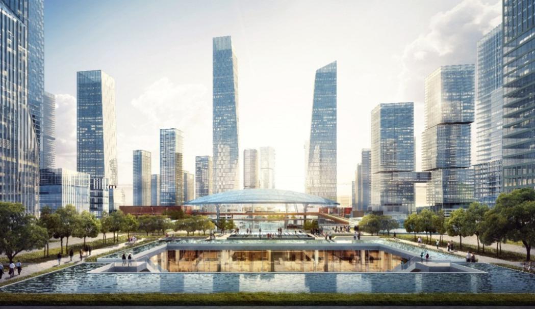 設(shè)計(jì)將新樞紐廣場(chǎng)融合城市公園、復(fù)合業(yè)態(tài)、多維換乘、自然意象、創(chuàng)意環(huán)境等多種場(chǎng)所,塑造多維體驗(yàn)的城市超核和多維人群活動(dòng)的北站都心。城市超核以豐富的空間層次融合室內(nèi)外觸媒,消除城市與樞紐界限,創(chuàng)造與城市功能相融合的等候空間,實(shí)現(xiàn)產(chǎn)業(yè)活力與自然活力共生,將車站、城市與自然和諧統(tǒng)一。