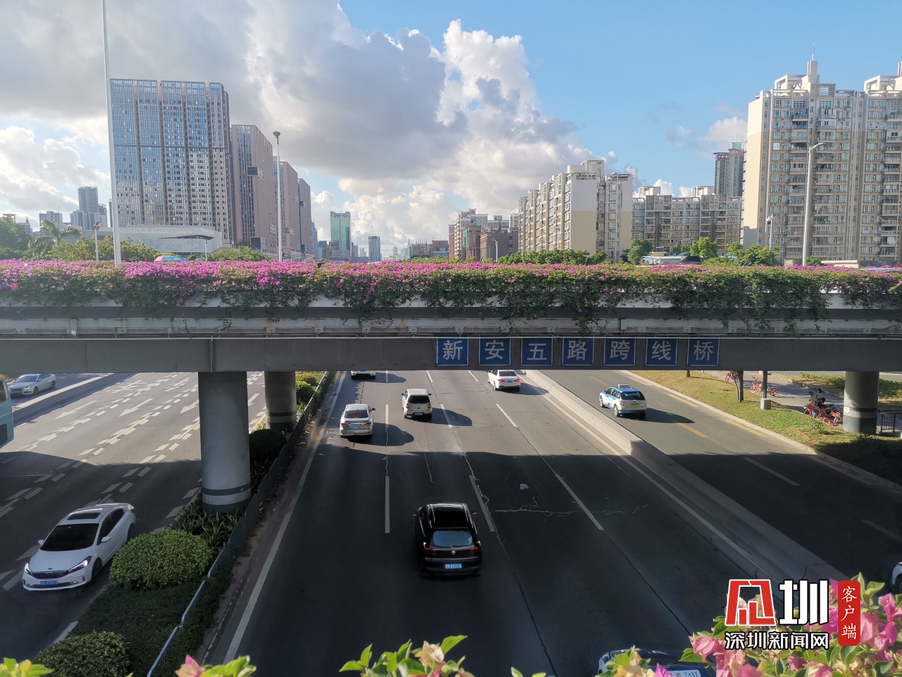 【廣深公路】上午8時,記者在位于新安五路和廣深公路的天橋拍攝實時交通情況,目前廣深公路的車流沒有造成擁堵。