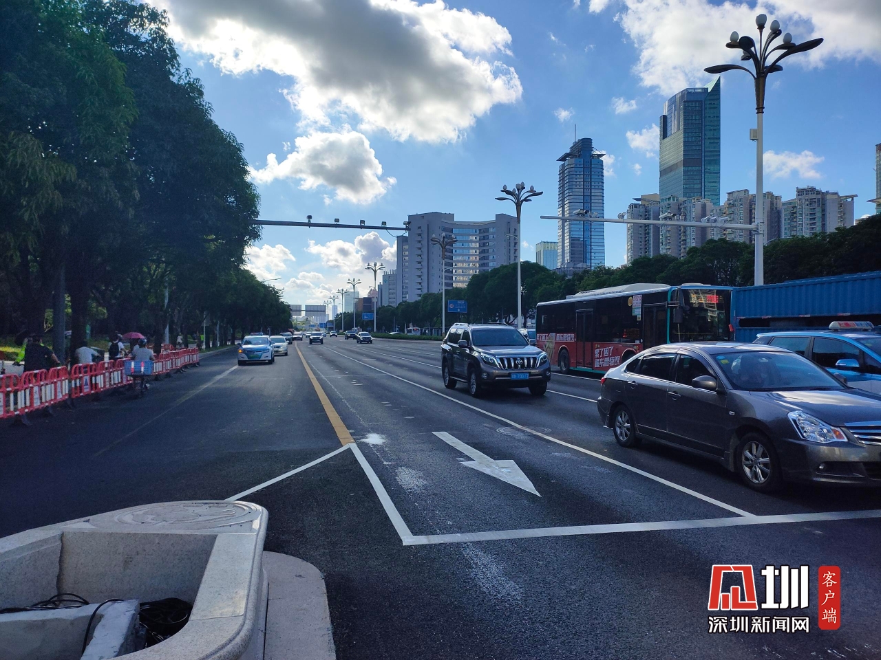【紅荔路】上午8時,記者在紅荔路和新洲路交匯處拍攝實時路況。