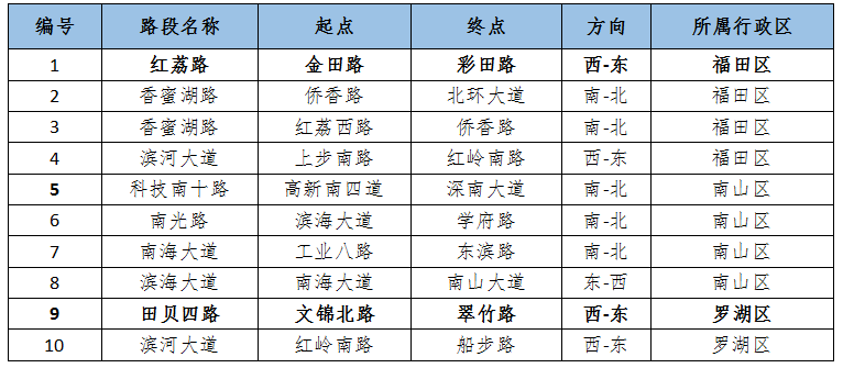 預(yù)計(jì)臺(tái)風(fēng)季工作日晚高峰時(shí)段十大易堵路段主要集中在福田、南山、羅湖區(qū),其中,福田區(qū)紅荔路(金田路-彩田路)、羅湖區(qū)田貝四路(文錦北路-翠竹路)等路段受降雨天氣影響較大,預(yù)計(jì)晚高峰時(shí)段路段通行時(shí)長較普通工作日多花費(fèi)30%-60%,道路運(yùn)行有所惡化。