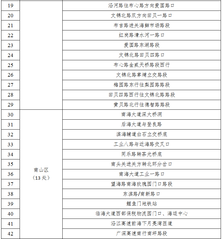 根據(jù)深圳市氣象局等權(quán)威部門發(fā)布的易積水路段匯總信息,深圳全市范圍暴雨天氣易積水路段如下,其中,東環(huán)一路、新洲路、文錦北路等路段周邊積水相對(duì)密集,請(qǐng)市民朋友小心留意,注意安全。