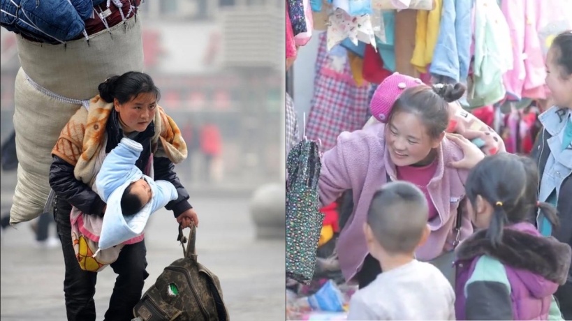 2010年1月30日,新華社記者周科在南昌火車站拍下了這樣一張照片:一位年輕的母親,背上巨大的行囊壓彎了她的身軀,左手里的背包眼看拖地,但攬在右臂中的嬰孩整潔而溫暖。抬頭前行的年輕母親面色紅潤,一雙眼睛堅定有力。