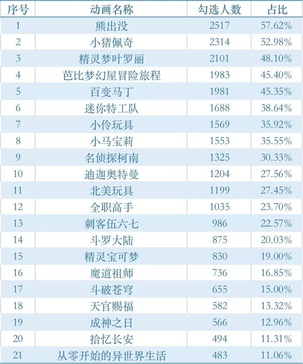 消費(fèi)調(diào)查選取21部有代表性的未成年人動畫片