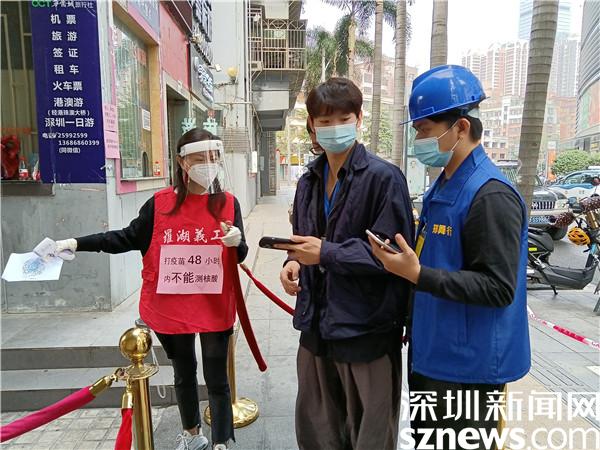 1月9日,羅湖區(qū)開始第二輪全員核酸檢測,桂園街道老圍社區(qū)在禧程酒店、人民銀行門口、老圍花園五樓設(shè)立了三個臨時檢測點,社區(qū)工作人員和志愿者以及區(qū)里和街道的下沉人員身穿紅馬甲,在社區(qū)黨委的領(lǐng)導下,全力以赴,積極組織和引導市民快速有序地采樣離場。