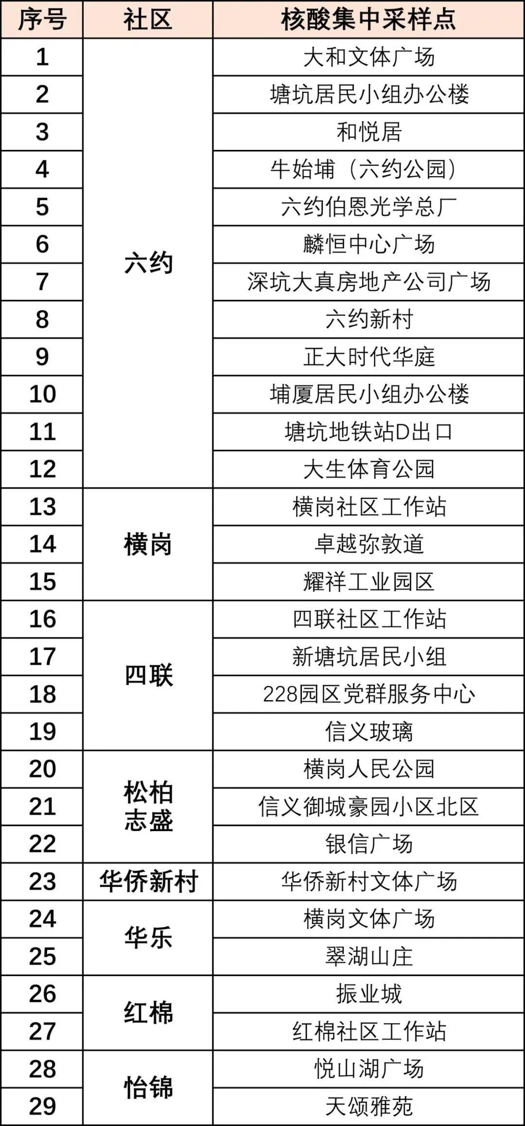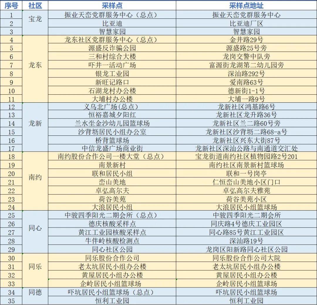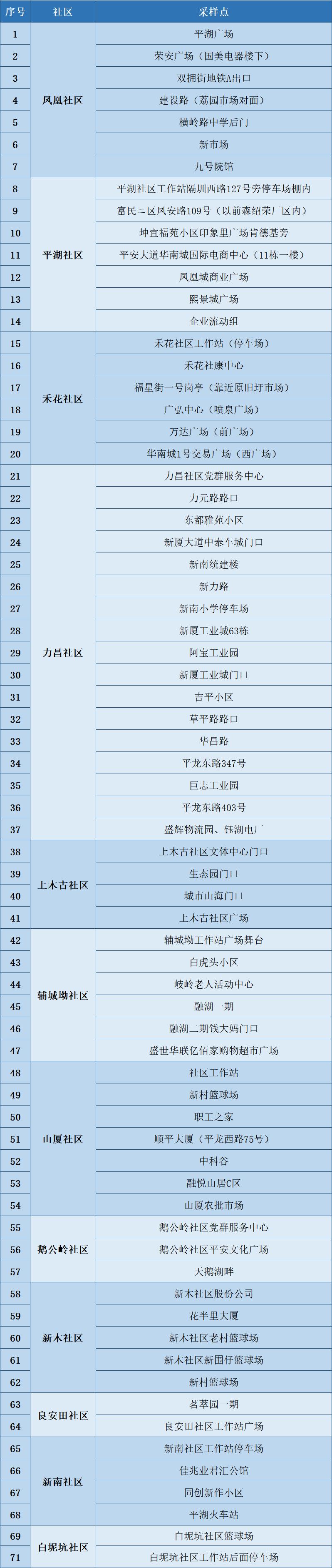 根據(jù)疫情防控需要,為最大程度保障人民群眾生命安全和身體健康,龍崗區(qū)各街道于1月10日開展新一輪免費(fèi)核酸檢測以下點(diǎn)位統(tǒng)計(jì)截至1月10日。各點(diǎn)位動(dòng)態(tài)更新請以社區(qū)通知及現(xiàn)場實(shí)際情況為準(zhǔn)。