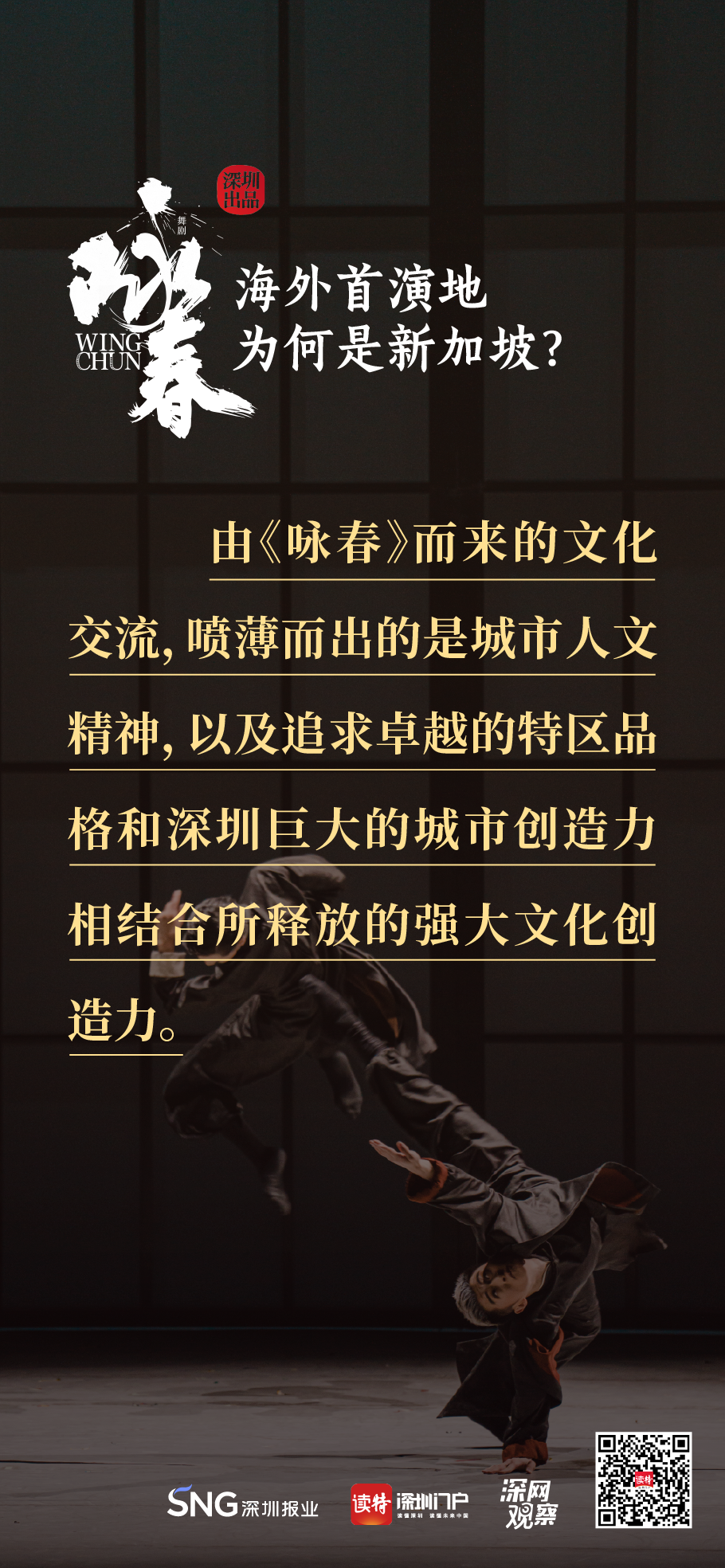 “新加坡與中國深圳血脈相連、文化相親,相信這一次的《詠春》能喚醒更多華人的文化基因!”深圳出品的原創(chuàng)舞劇《詠春》,從今年3月開啟全國首輪巡演以來,已經(jīng)走遍20多個(gè)城市,巡演很快達(dá)100場(chǎng),場(chǎng)場(chǎng)火爆,一票難求,成為國內(nèi)歌舞劇市場(chǎng)的現(xiàn)象級(jí)佳作。據(jù)媒體報(bào)道,9月27日-30日,《詠春》受邀到新加坡濱海藝術(shù)中心連演4場(chǎng),開啟海外演出。9月16日,新加坡《聯(lián)合早報(bào)》發(fā)表長文《中國舞?。荚伌海矩灤┈F(xiàn)代與傳統(tǒng)》稱:“這部舞劇不僅火遍神州,自從要在新加坡公演的消息傳出后,也成為獅城華人圈的熱門話題”。