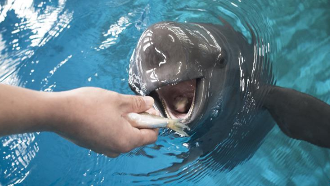 在中科院水生所武漢白鱀豚館里,生活著6頭長(zhǎng)江江豚。 長(zhǎng)江江豚是一種古老的水生哺乳動(dòng)物,在地球生活已有2500萬(wàn)年,被稱為長(zhǎng)江生態(tài)的“活化石”,僅分布于長(zhǎng)江中下游干流及與之相連的鄱陽(yáng)湖、洞庭湖等水域。