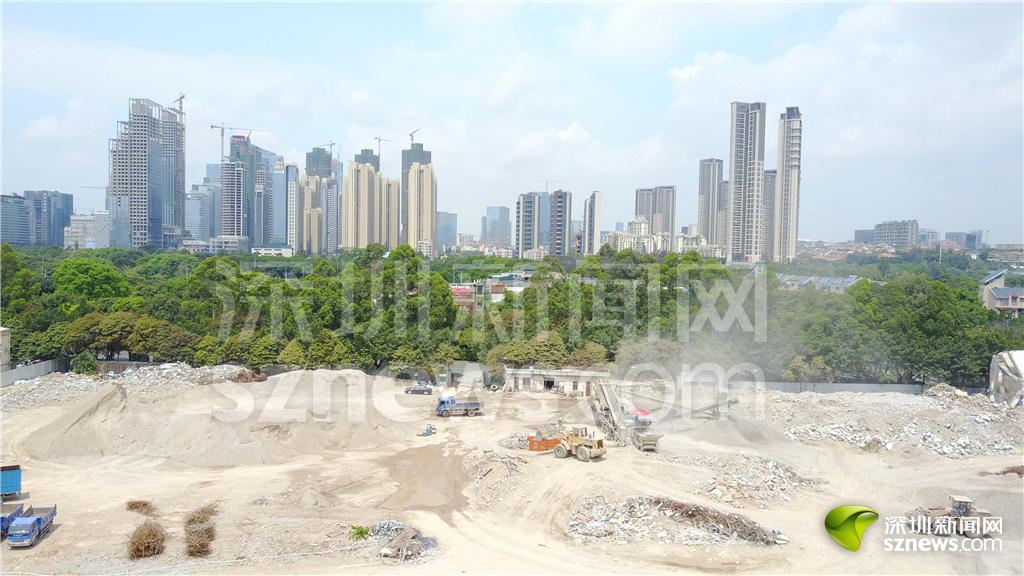 白石洲城中村內(nèi)的建筑工地,“握手樓”群被推倒,白石洲正在升級(jí)