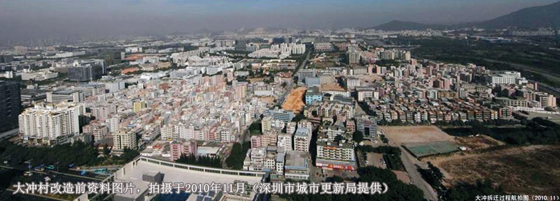 改造前,大沖村現(xiàn)狀用地呈現(xiàn)隨意開發(fā)的“城中村”形態(tài),基礎(chǔ)設(shè)施比較缺乏,建筑密度大,改造難度較大,舊村改造涉及到1000戶左右原居民及300多戶非原居民的動(dòng)遷、7萬多暫住人口的搬遷、近1500多棟建筑、約110萬平方米的拆除,是深圳市規(guī)模最大的城中村改造項(xiàng)目。