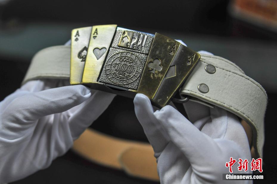 1月30日,遼寧沈陽,沈陽桃仙國際機(jī)場安檢中心工作人員展示腰帶打火機(jī)。當(dāng)日在沈陽桃仙國際機(jī)場,展示了近期被查獲的手機(jī)打火機(jī)、口紅打火機(jī)、腰帶打火機(jī)等各類打火機(jī)10余款。2018年春運(yùn)工作從2月1日即將開始,為確保機(jī)場春運(yùn)工作安全、正常、有序,沈陽桃仙國際機(jī)場安檢中心將加大檢查力度,嚴(yán)格執(zhí)行“三品”查堵制度,重點查處夾帶易燃易爆危險品乘坐飛機(jī)。中新社記者于海洋 攝