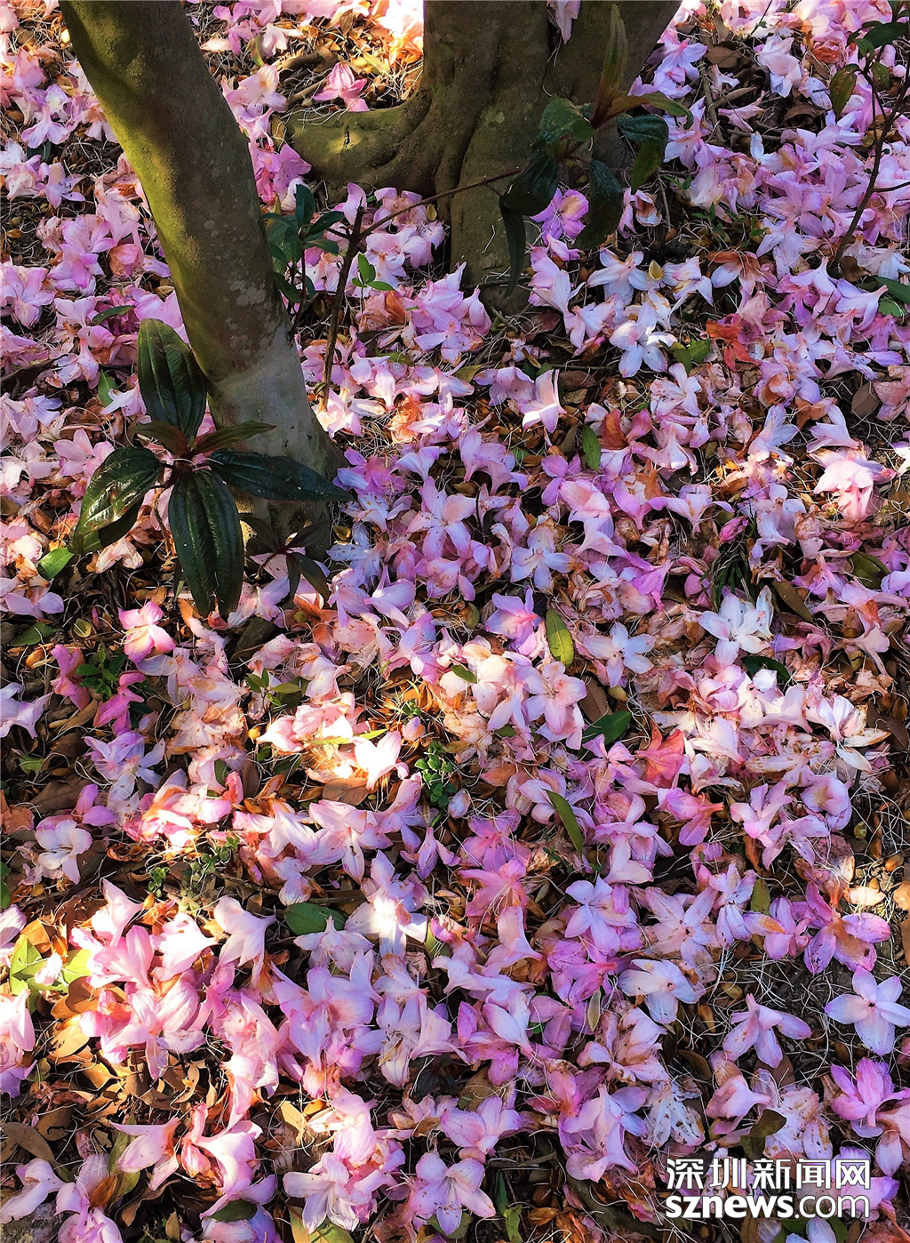 地上掉落的毛棉杜鵑,看起來(lái)很有意境