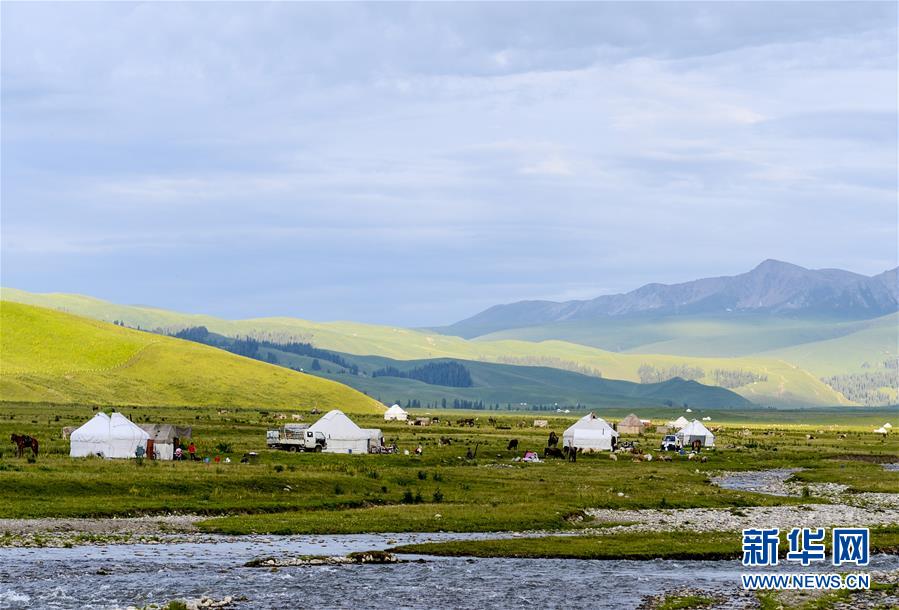 進(jìn)入7月,被譽(yù)為“空中草原”的新疆那拉提景區(qū)日均入園游客在5000人次左右,迎來(lái)旅游旺季。那拉提景區(qū)地處新疆伊犁河谷東端,是世界四大草原之一的亞高山草甸植物區(qū),自古以來(lái)就是著名的牧場(chǎng)。新華社記者 趙戈 攝