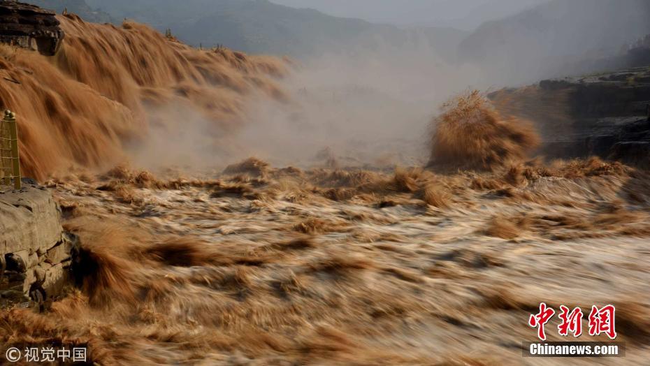 7月17日,山西臨汾,游客在黃河壺口瀑布游覽觀瀑。進(jìn)入7月主汛期,受黃河上游降雨量增多影響,位于山西吉縣和陜西宜川縣交界的黃河壺口瀑布水量暴漲。濁浪滔天的壯美瀑布群景觀,吸引了眾多游客。呂桂明攝 圖片來(lái)源:視覺中國(guó)